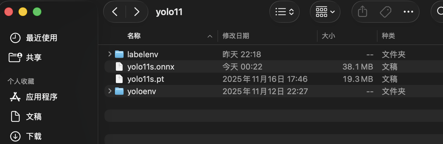 yolo11s.onnx 可以忽略,差异原因是我在导出 yolo11s.pt 的时候使用的命令 yolo export model=yolo11s.pt format=onnx 。