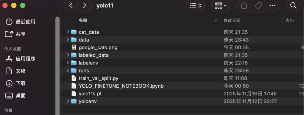 上述命令会在当前目录(yolo_finetune)中创建环境 yoloenv ,python 版本为 3.11 。然后我们激活它。