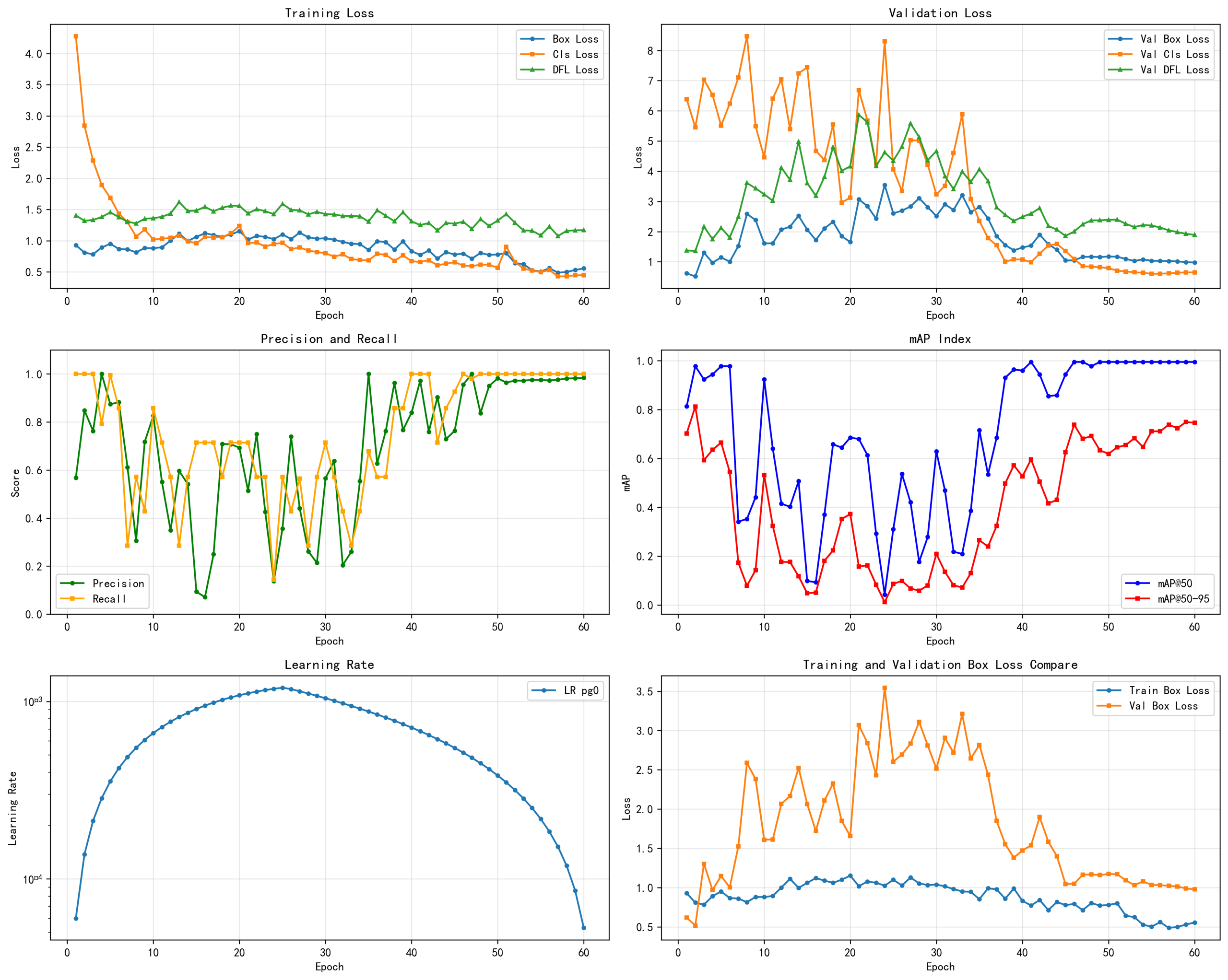 - 模型微调训练:这里我们选择 yolo11s.pt 作为基础模型;根据对一些关键参数的监控,可能需要重复多次进行调整;